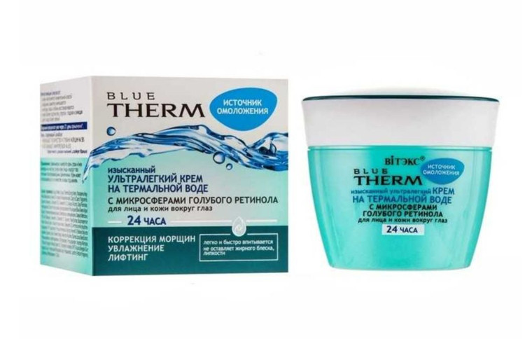 کرم ۲۴ ساعته فوق سبک و لوکس صورت و دور چشم بلودرم با آب حرارتی و رتینول آبی